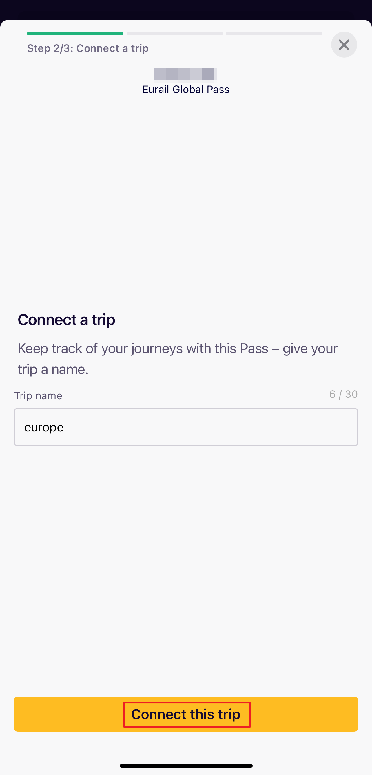 ์ฑ ์คํ โ add a pass โ Eurail Pass ์ถ๊ฐ โ ์ด๋ฆ์ ์ฑ๋ง ์